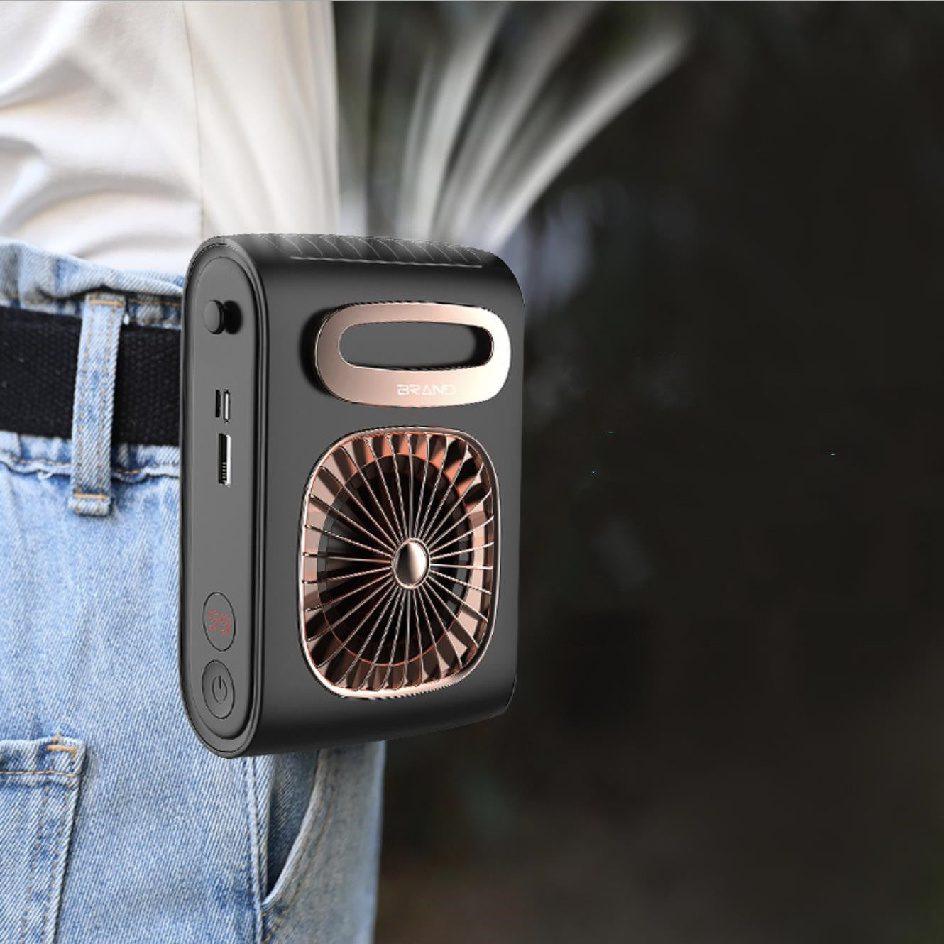 Portable Cooling and Charging: The Waist Power Bank Fan combines the functionality of a portable fan and a power bank, providing on-the-go cooling and the ability to charge devices simultaneously.